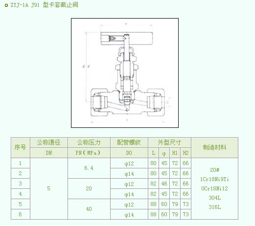 •   产品名称:ZYJ-1A J91 型卡套截止阀