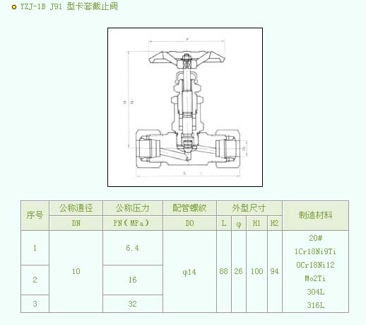 •   产品名称:YZJ-1B J91 型卡套截止阀