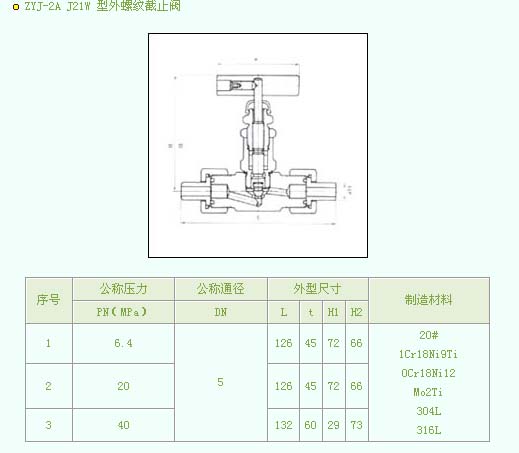 •   产品名称:ZYJ-2A J21W 型外螺纹截止阀