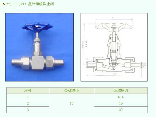 •   产品名称:ZYJ-2B J21W 型外螺纹截止阀