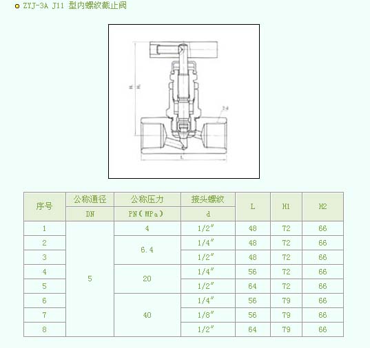•   产品名称:ZYJ-3A J11 型内螺纹截止阀