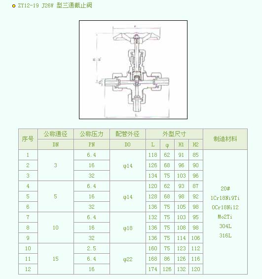 •   产品名称:ZY12-19 J26W三通截止阀