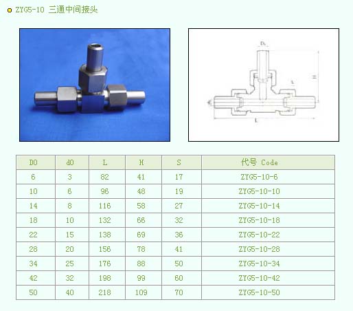 •   产品名称:ZYG5-10 三通中间接头